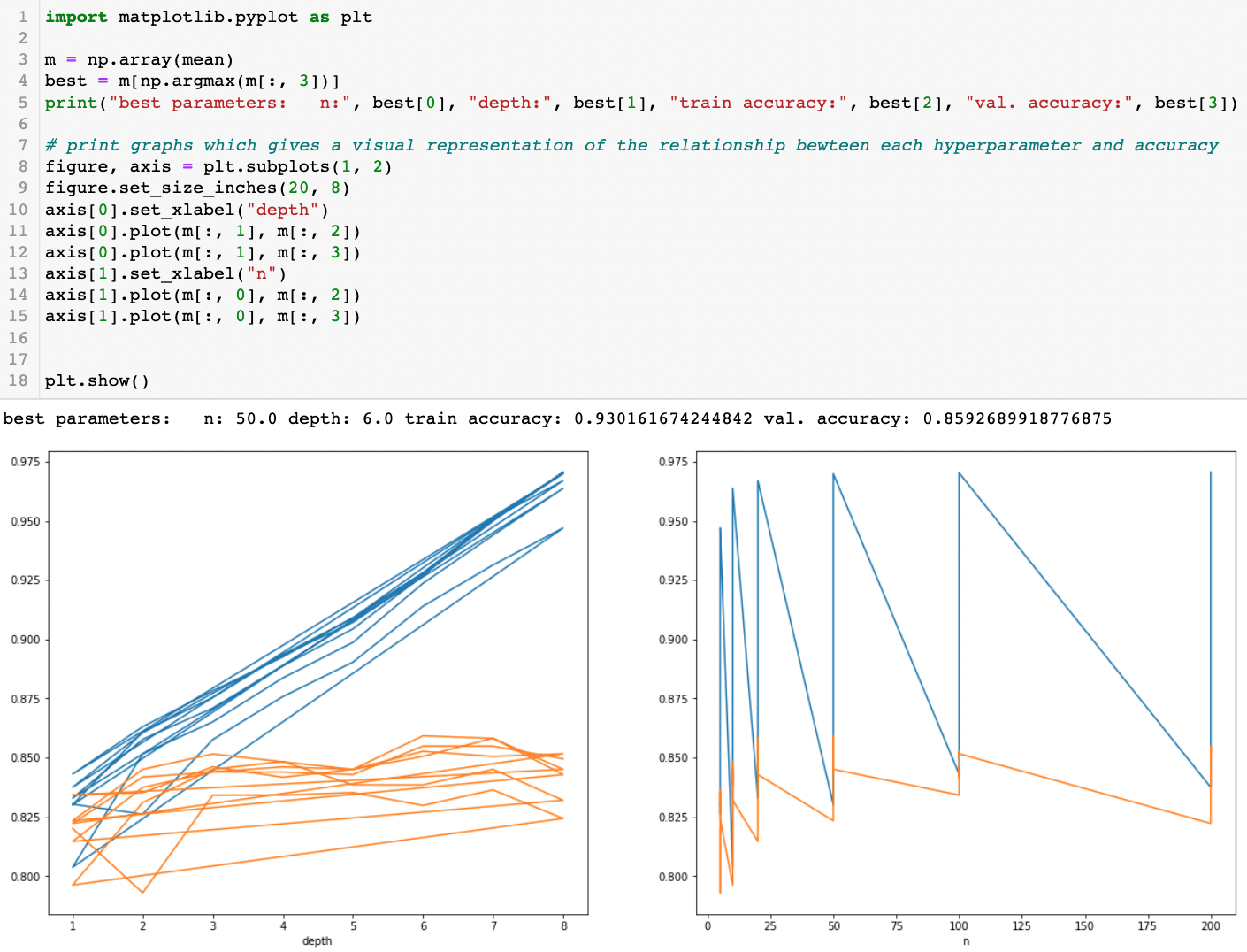 Using the sklearn library for speed, we tested combinations of these parameters. The best results: